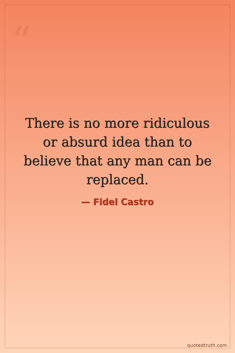 There is no more ridiculous or absurd idea than to believe that any man can be replaced.