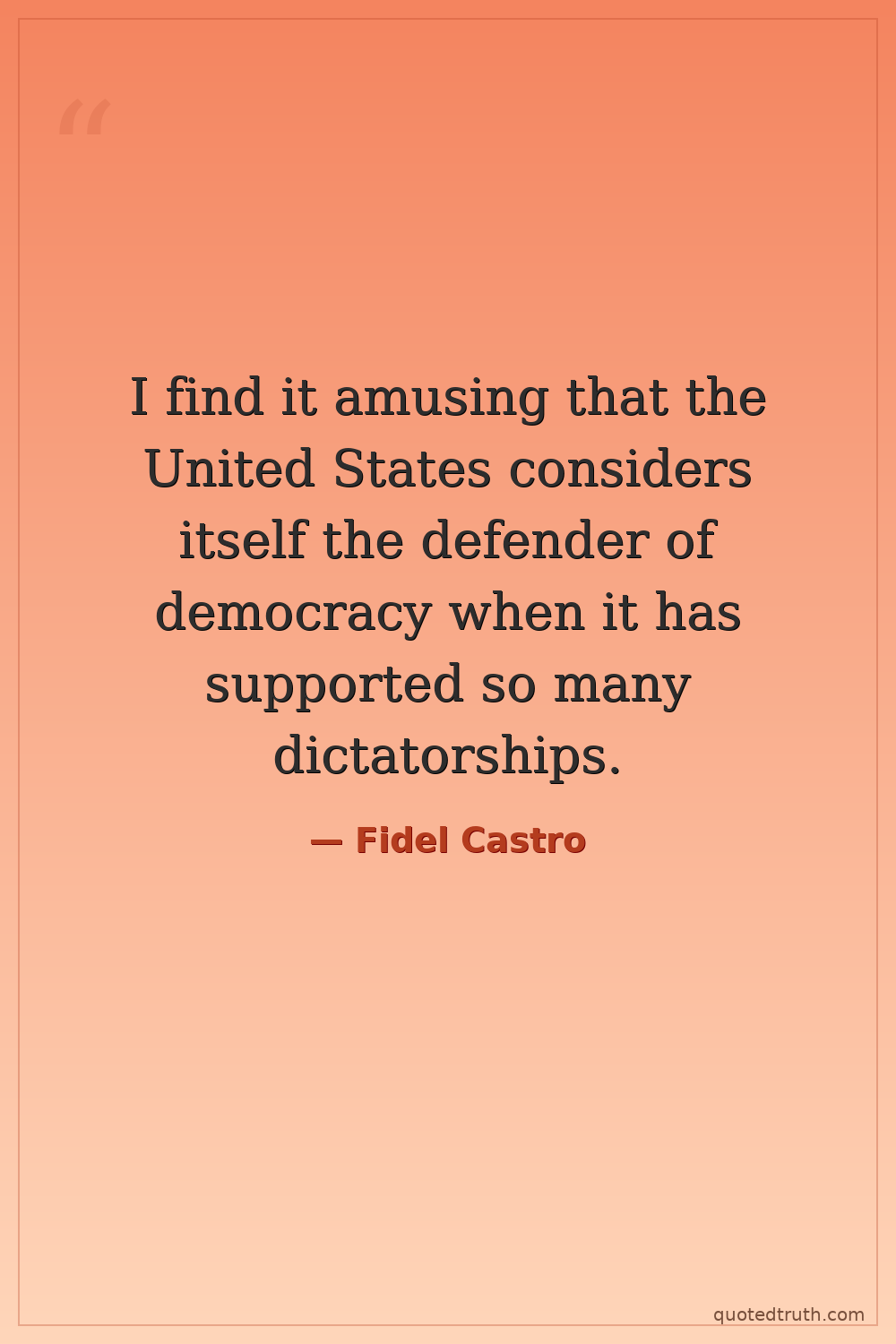 I find it amusing that the United States considers itself the defender of democracy when it has supported so many dictatorships.