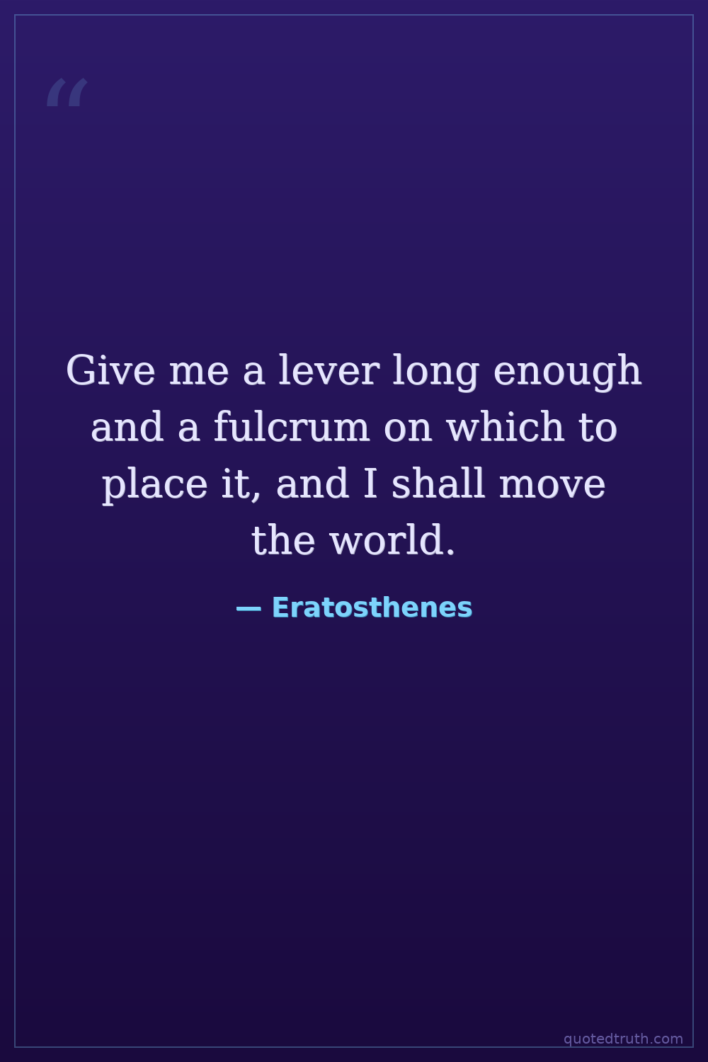 Give me a lever long enough and a fulcrum on which to place it, and I shall move the world.