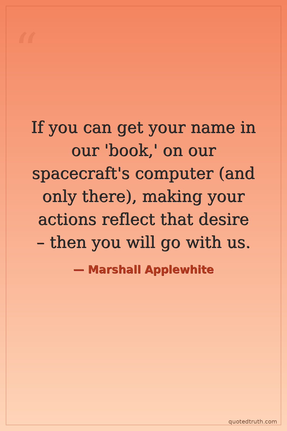 If you can get your name in our 'book,' on our spacecraft's computer (and only there), making your actions reflect that desire – then you will go with us.