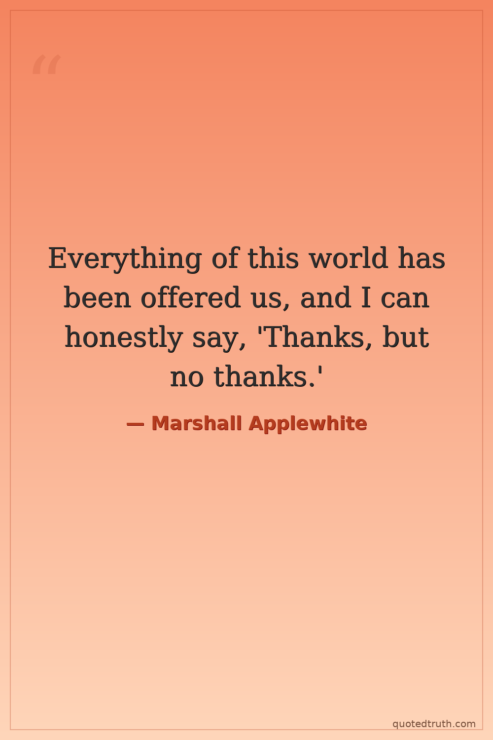 Everything of this world has been offered us, and I can honestly say, 'Thanks, but no thanks.'