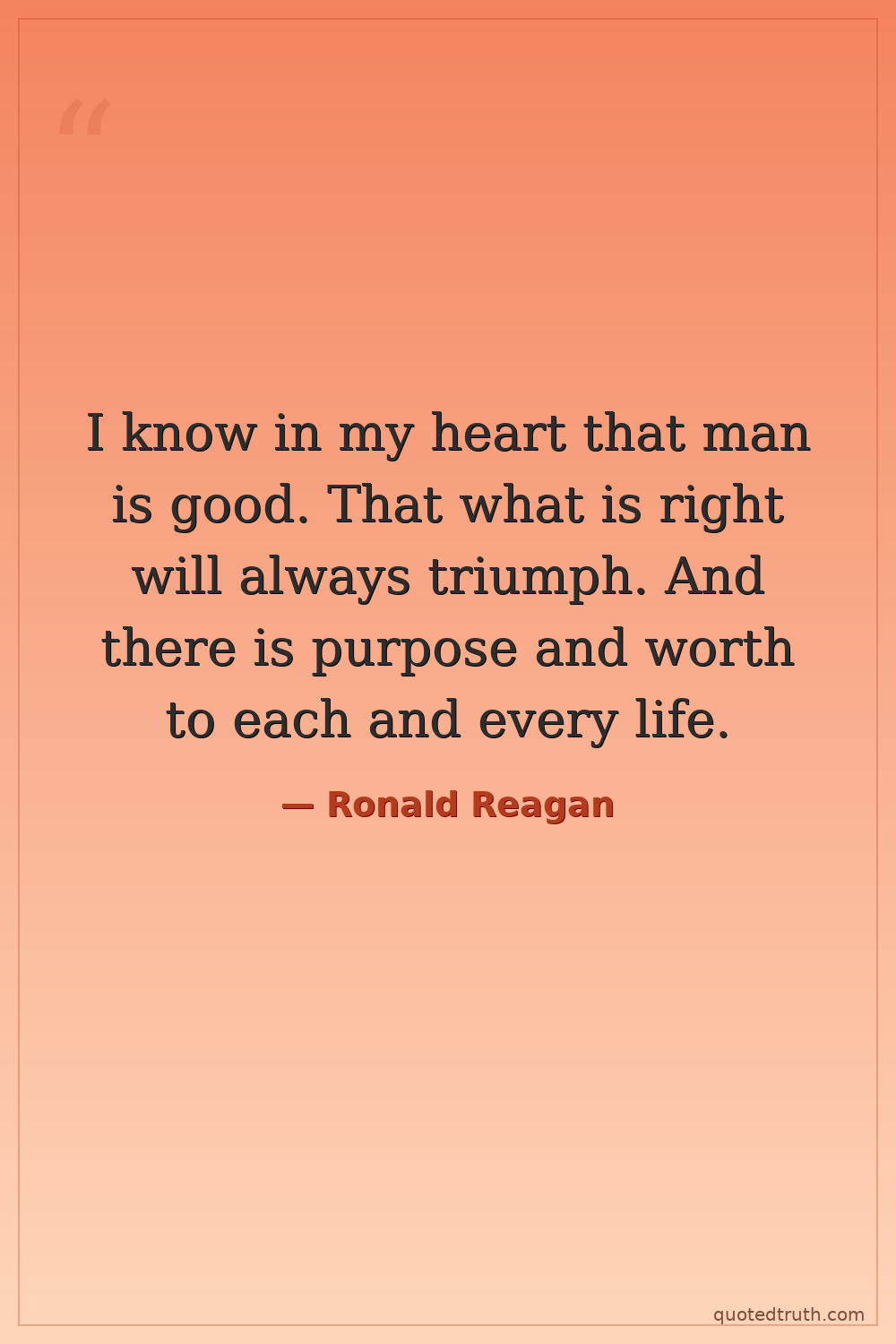 I know in my heart that man is good. That what is right will always triumph. And there is purpose and worth to each and every life.