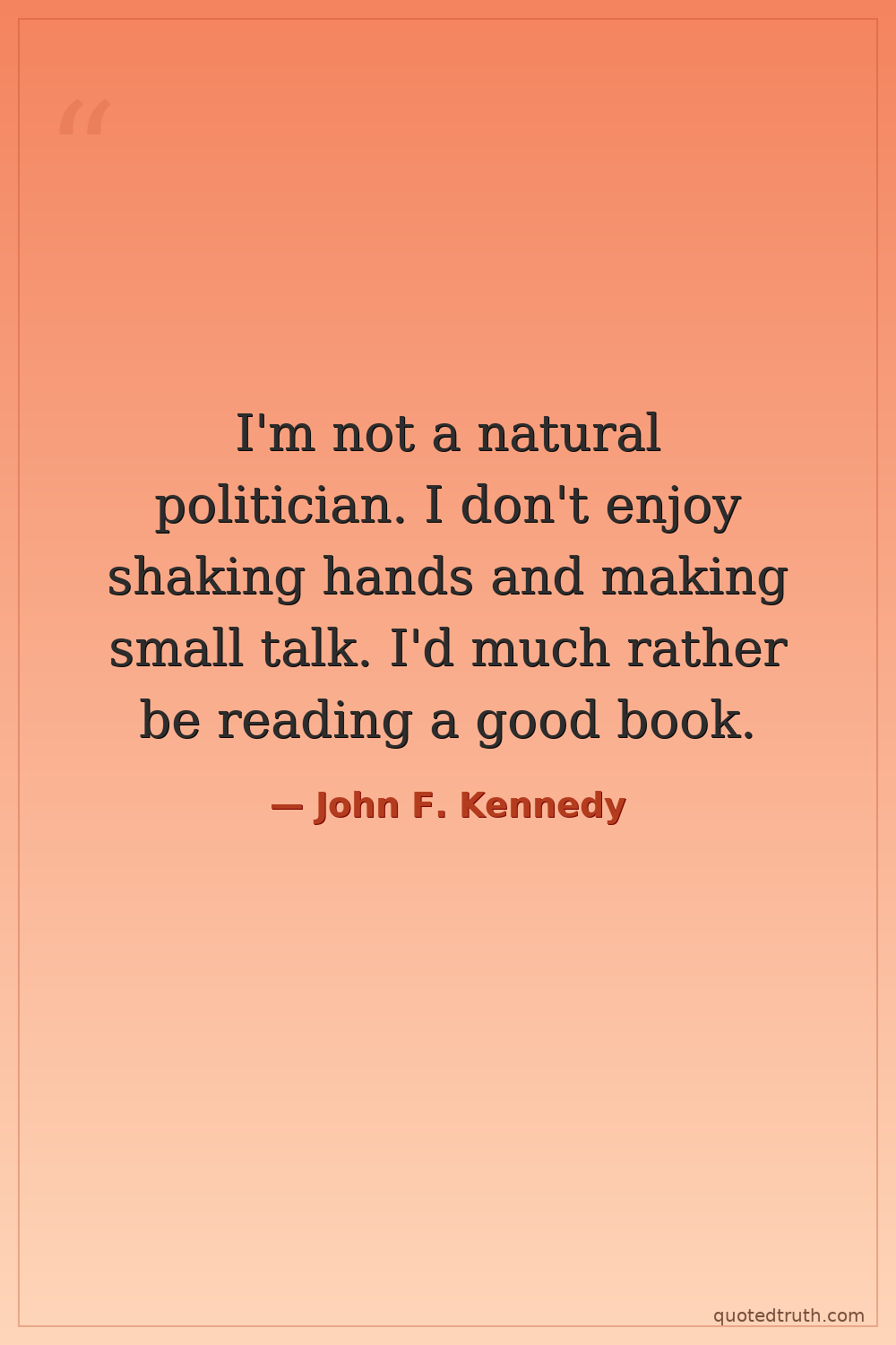 I'm not a natural politician. I don't enjoy shaking hands and making small talk. I'd much rather be reading a good book.