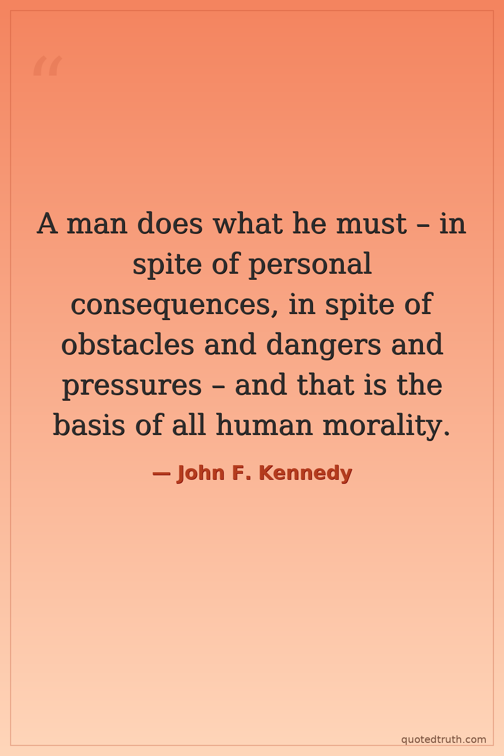 A man does what he must – in spite of personal consequences, in spite of obstacles and dangers and pressures – and that is the basis of all human morality.