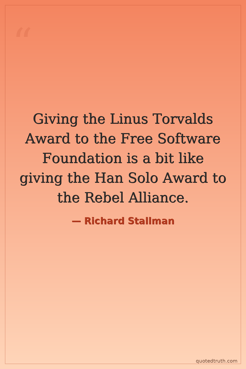 Giving the Linus Torvalds Award to the Free Software Foundation is a bit like giving the Han Solo Award to the Rebel Alliance.