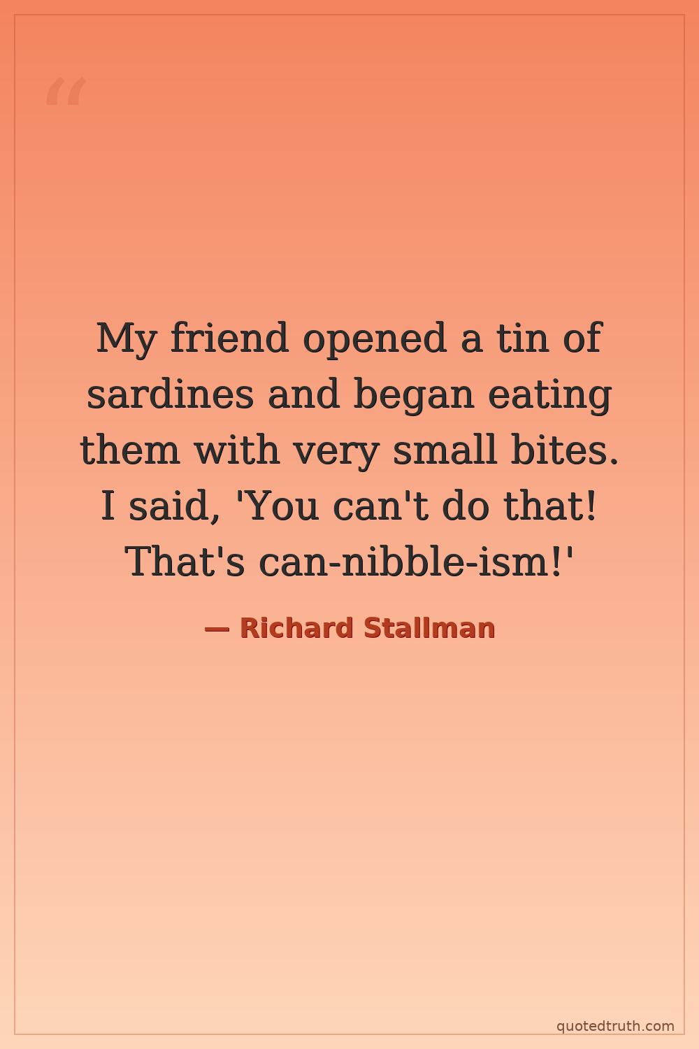 My friend opened a tin of sardines and began eating them with very small bites. I said, 'You can't do that! That's can-nibble-ism!'