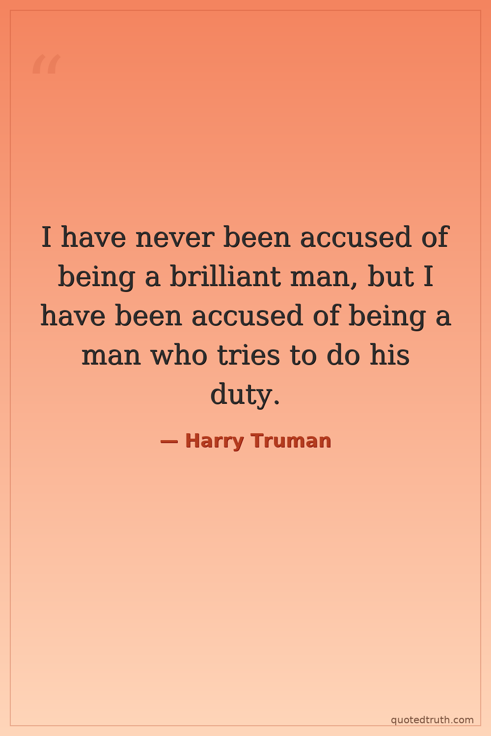 I have never been accused of being a brilliant man, but I have been accused of being a man who tries to do his duty.