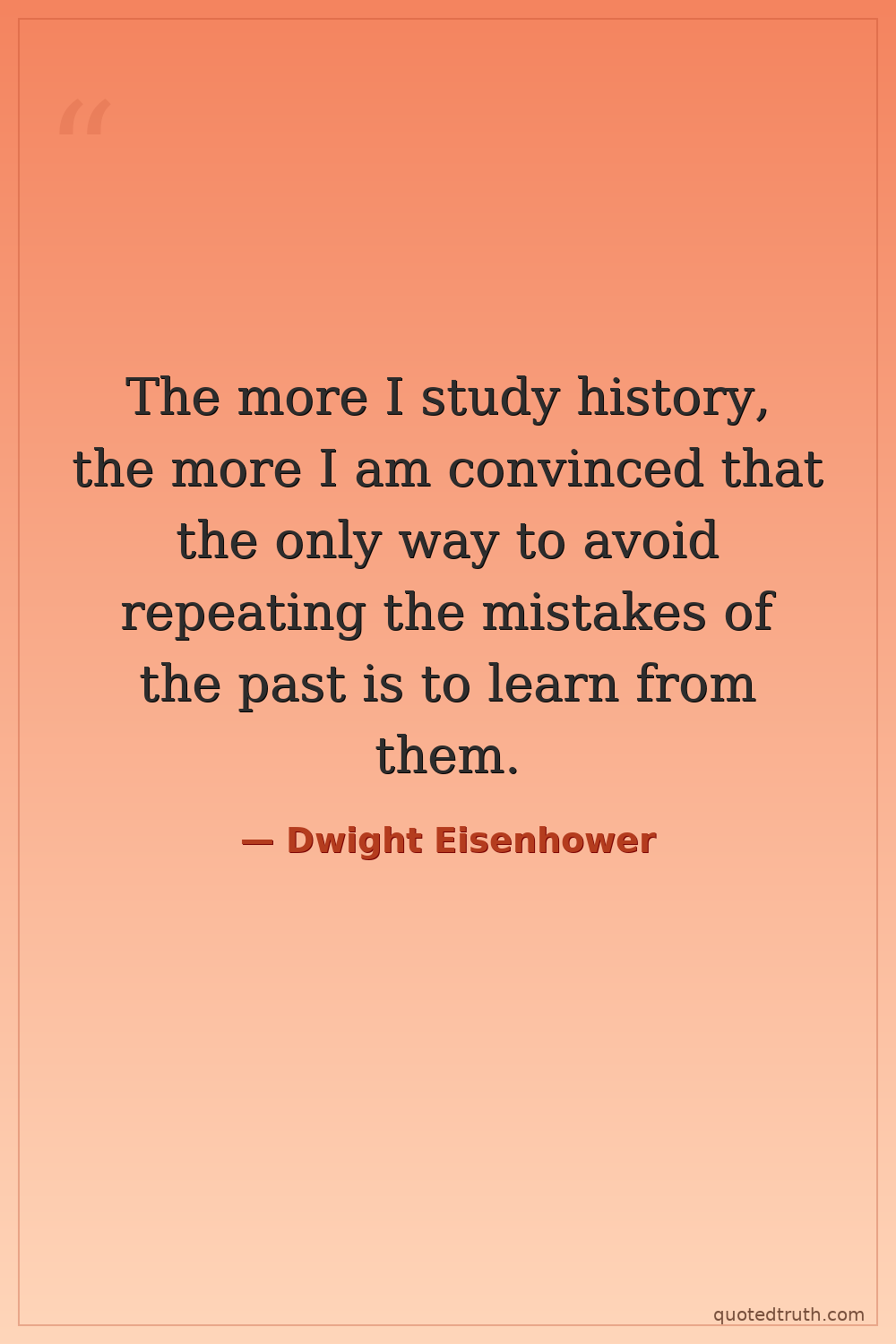 The more I study history, the more I am convinced that the only way to avoid repeating the mistakes of the past is to learn from them.
