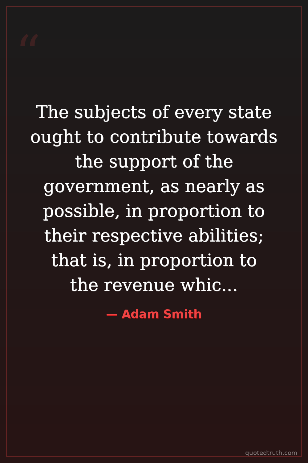 The subjects of every state ought to contribute towards the support of the government, as nearly as possible, in proportion to their respective abilities; that is, in proportion to the revenue which they respectively enjoy under the protection of the state.