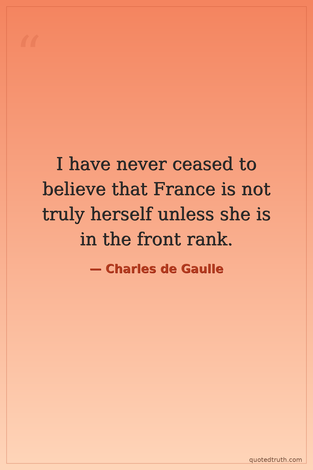 I have never ceased to believe that France is not truly herself unless she is in the front rank.