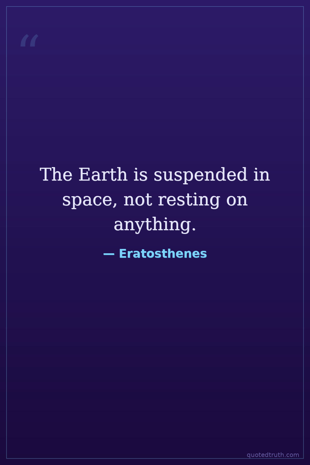 The Earth is suspended in space, not resting on anything.