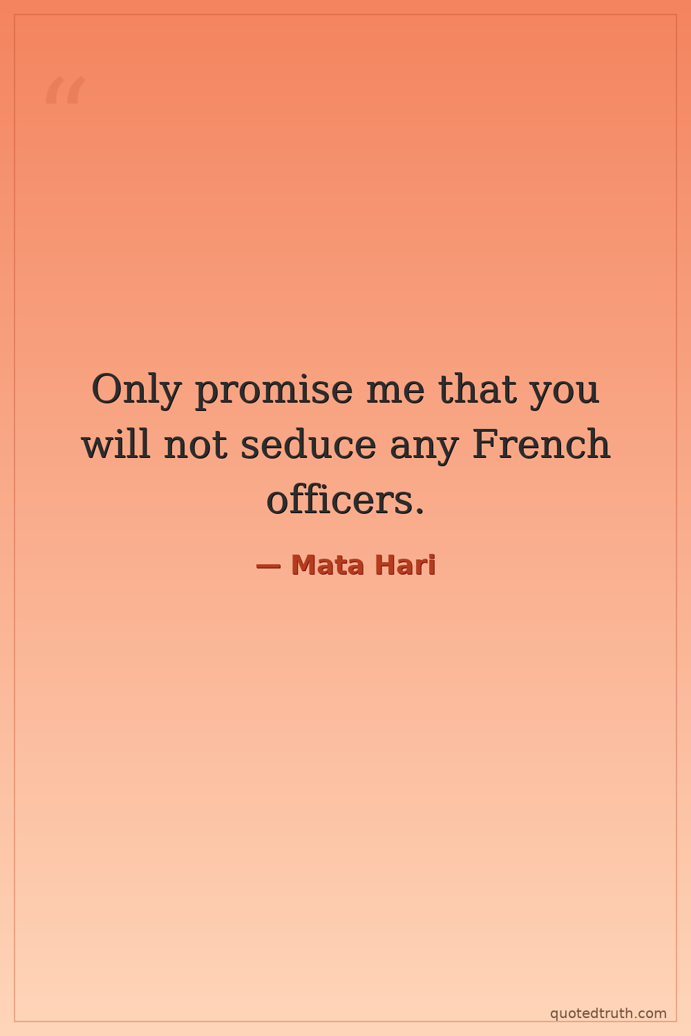 A quote from Captain Georges Ladoux to Mata Hari, to which she likely had a witty or defiant internal response, though her direct reply is not provided as a quote here. This is a quote *to* her, not *by* her. I need to be careful here. I will omit this one as the user requested quotes *by* the person.