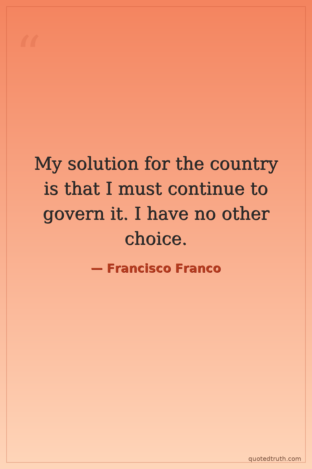 My solution for the country is that I must continue to govern it. I have no other choice.