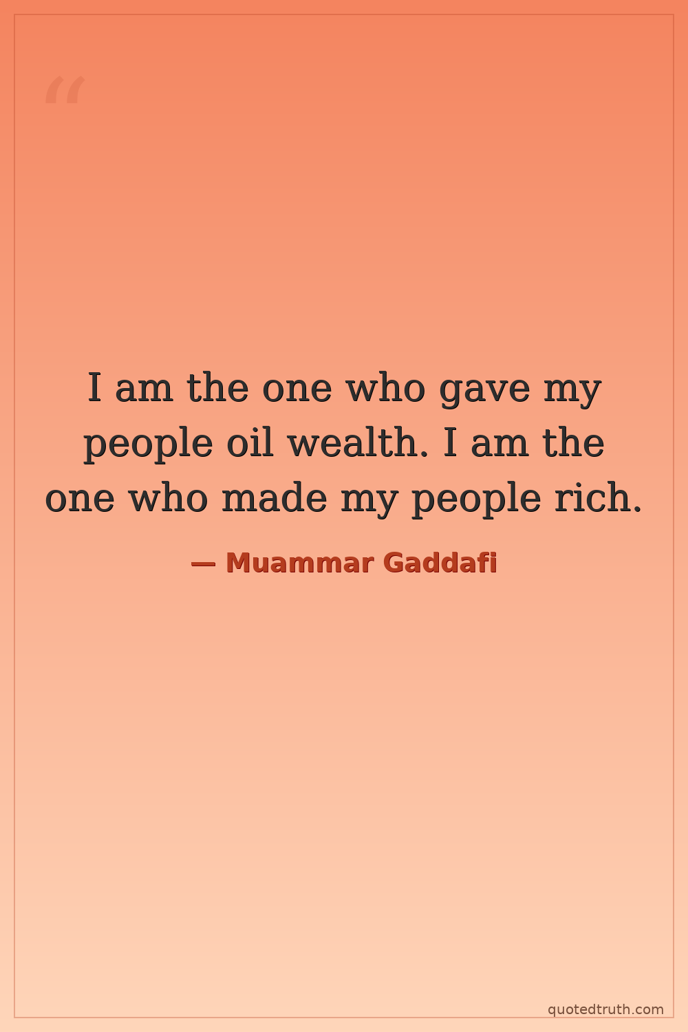 I am the one who gave my people oil wealth. I am the one who made my people rich.