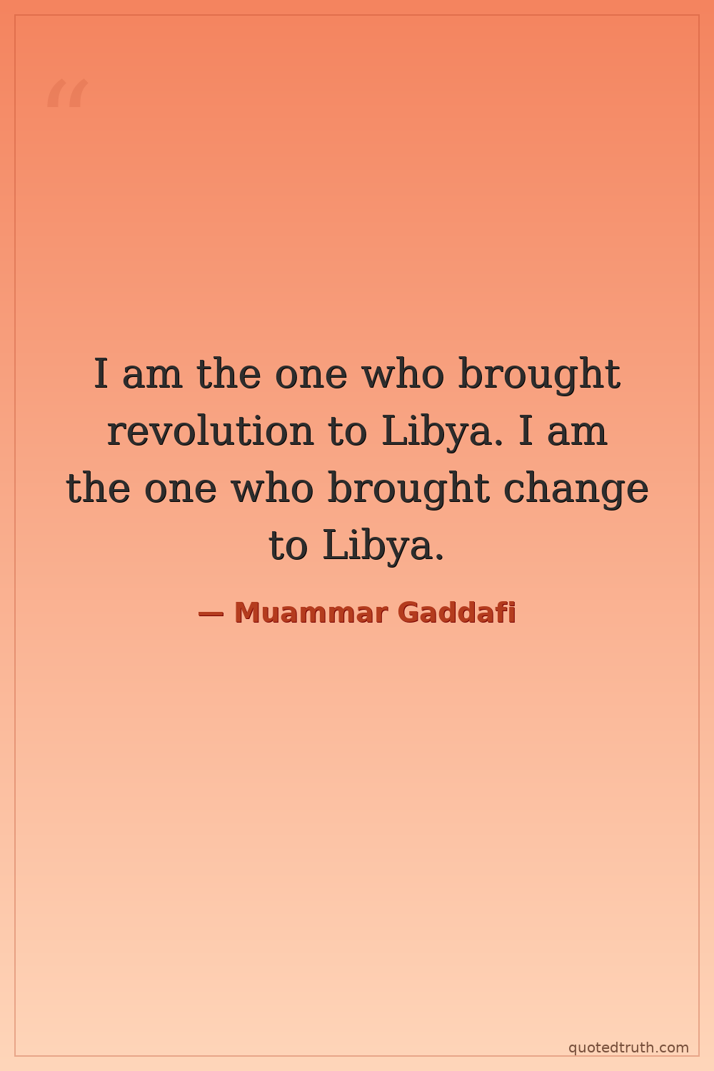 I am the one who brought revolution to Libya. I am the one who brought change to Libya.