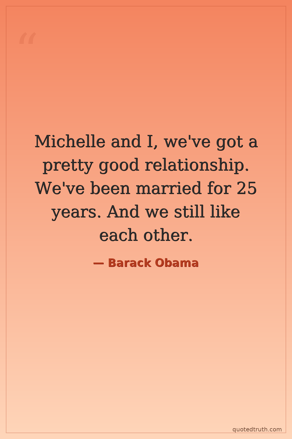 Michelle and I, we've got a pretty good relationship. We've been married for 25 years. And we still like each other.