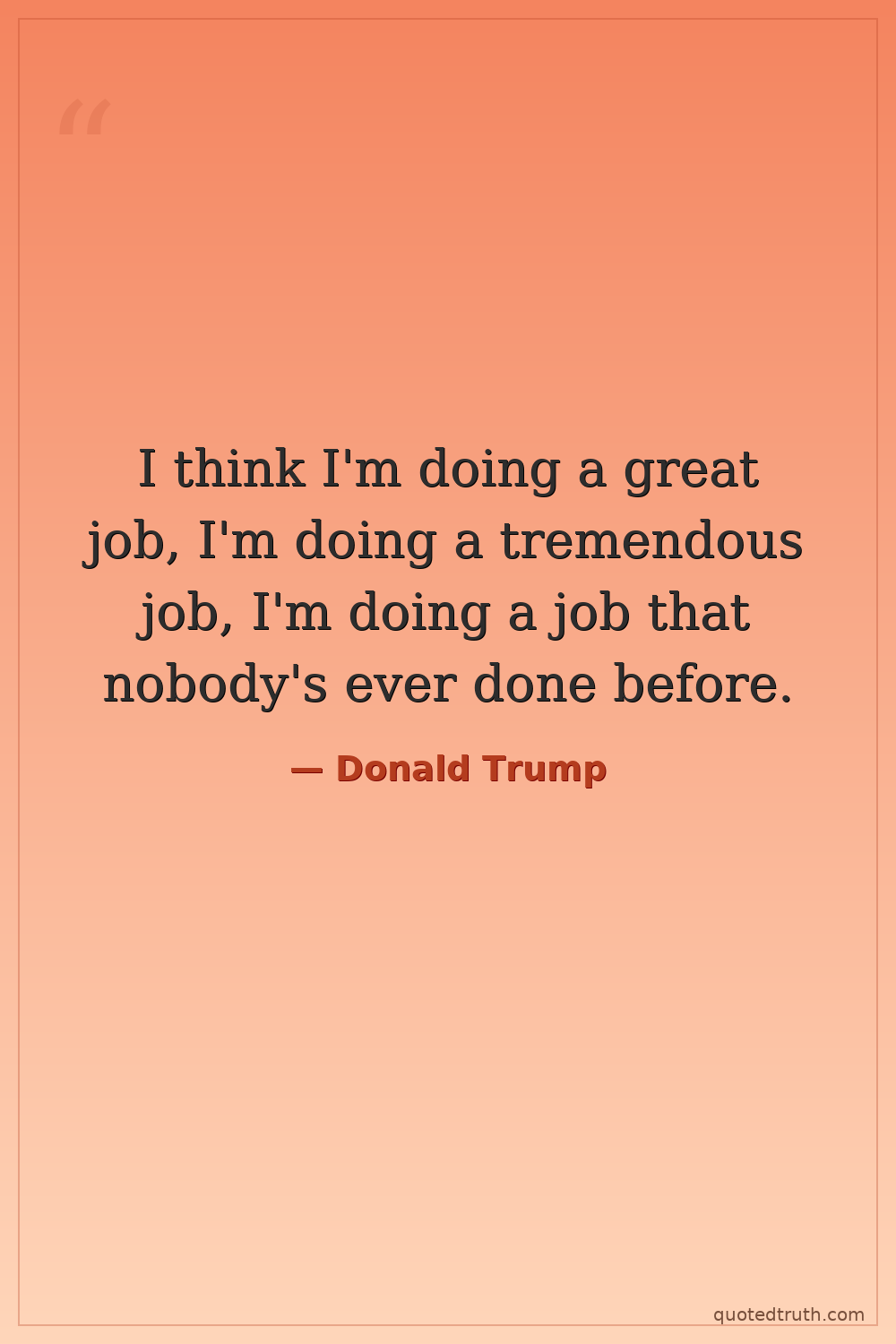 I think I'm doing a great job, I'm doing a tremendous job, I'm doing a job that nobody's ever done before.