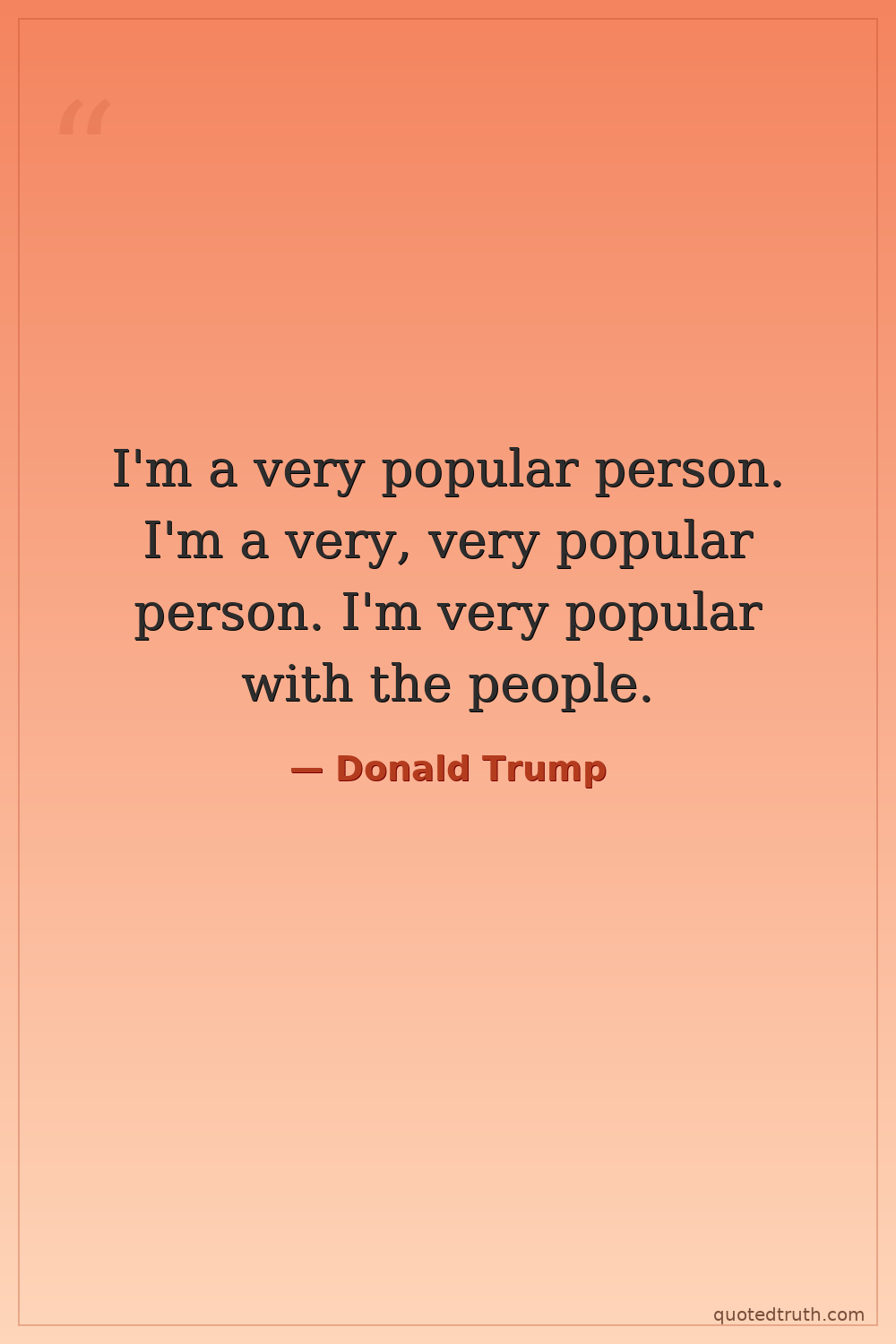 I'm a very popular person. I'm a very, very popular person. I'm very popular with the people.