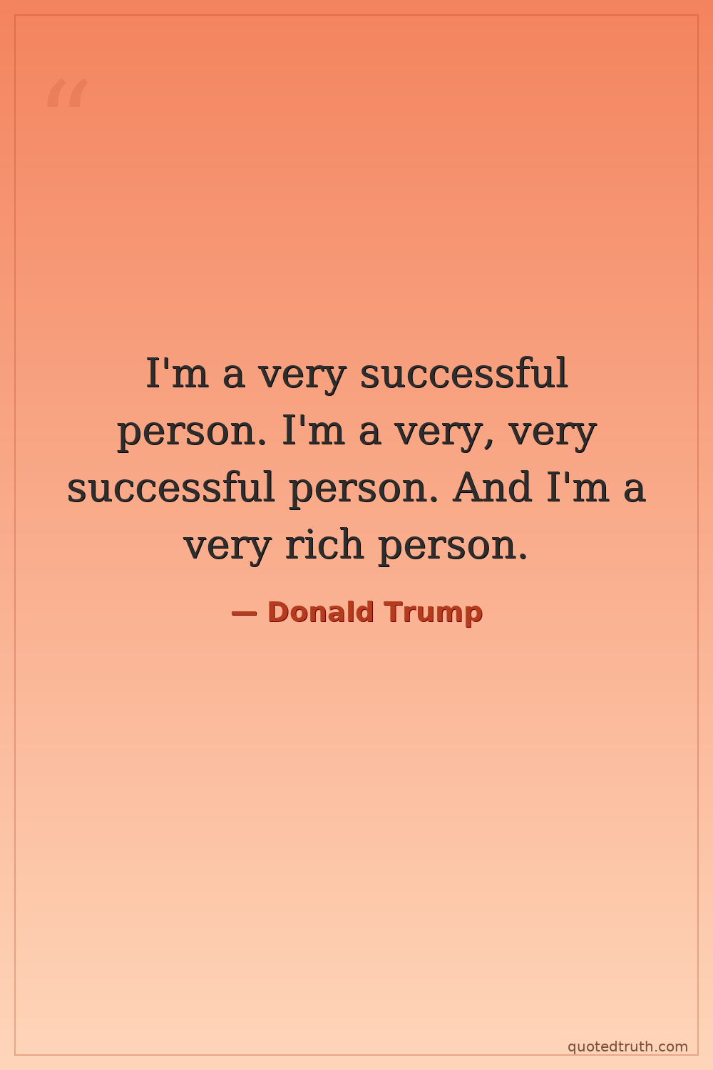 I'm a very successful person. I'm a very, very successful person. And I'm a very rich person.