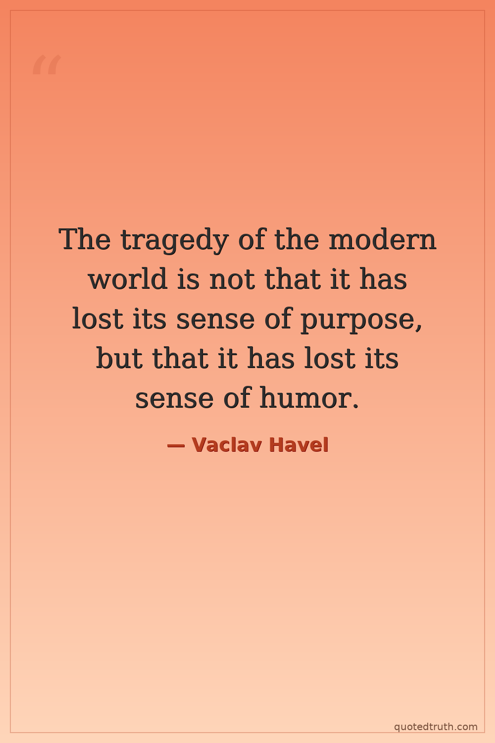 The tragedy of the modern world is not that it has lost its sense of purpose, but that it has lost its sense of humor.