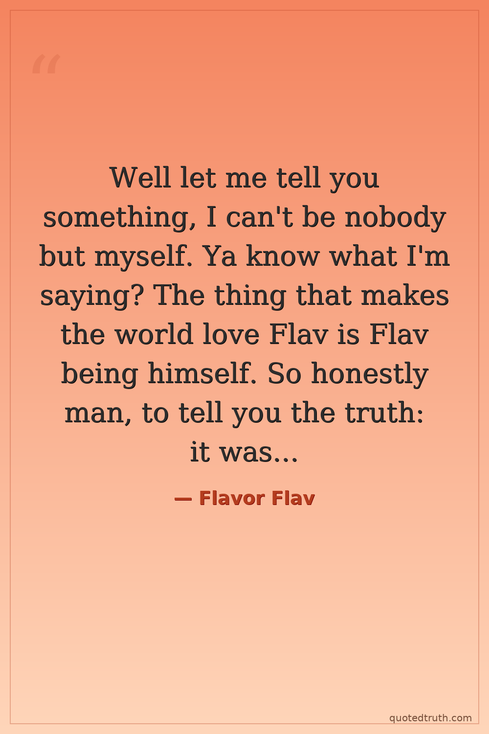 Well let me tell you something, I can't be nobody but myself. Ya know what I'm saying? The thing that makes the world love Flav is Flav being himself. So honestly man, to tell you the truth: it was not hard to be myself. It was real easy.