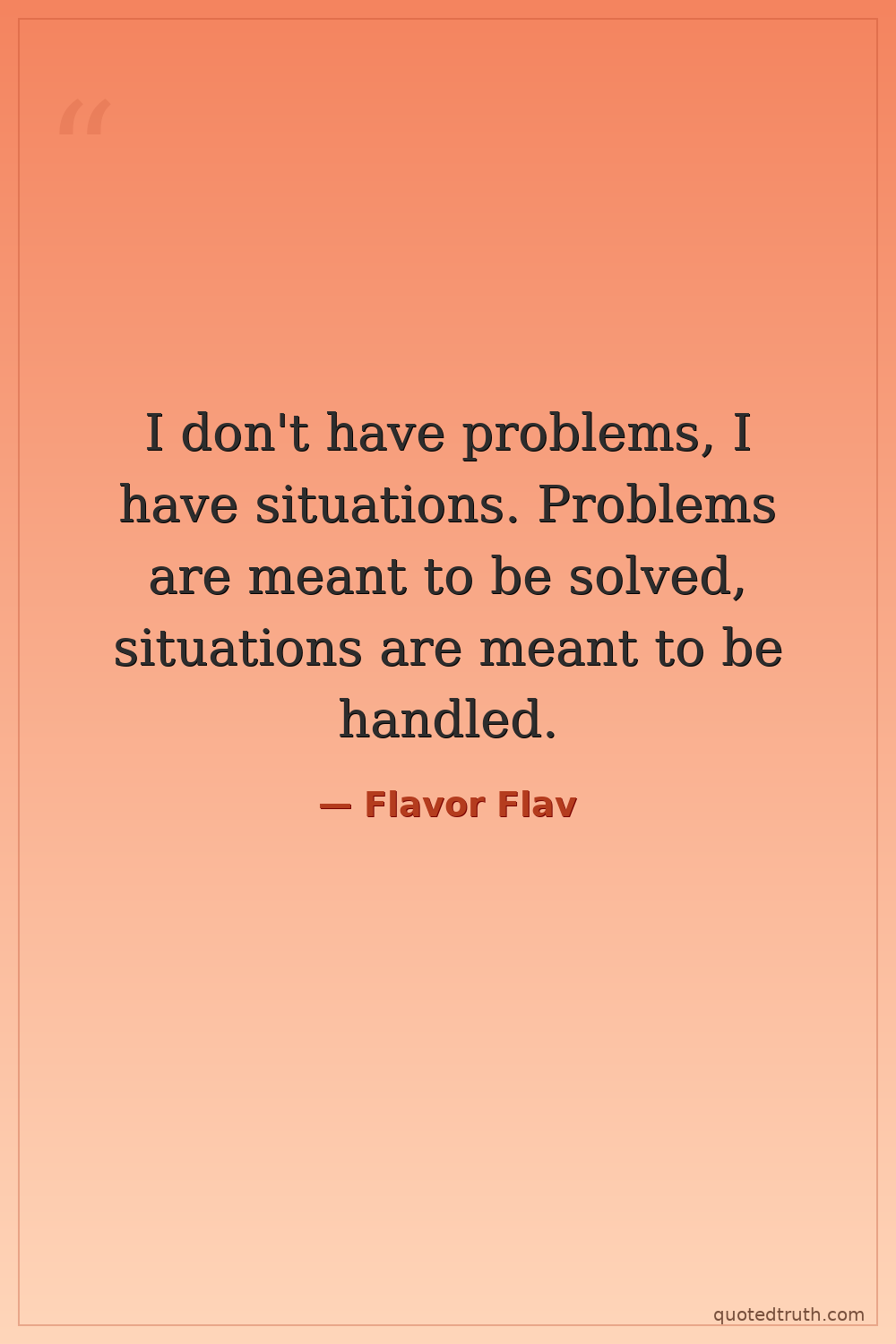 I don't have problems, I have situations. Problems are meant to be solved, situations are meant to be handled.