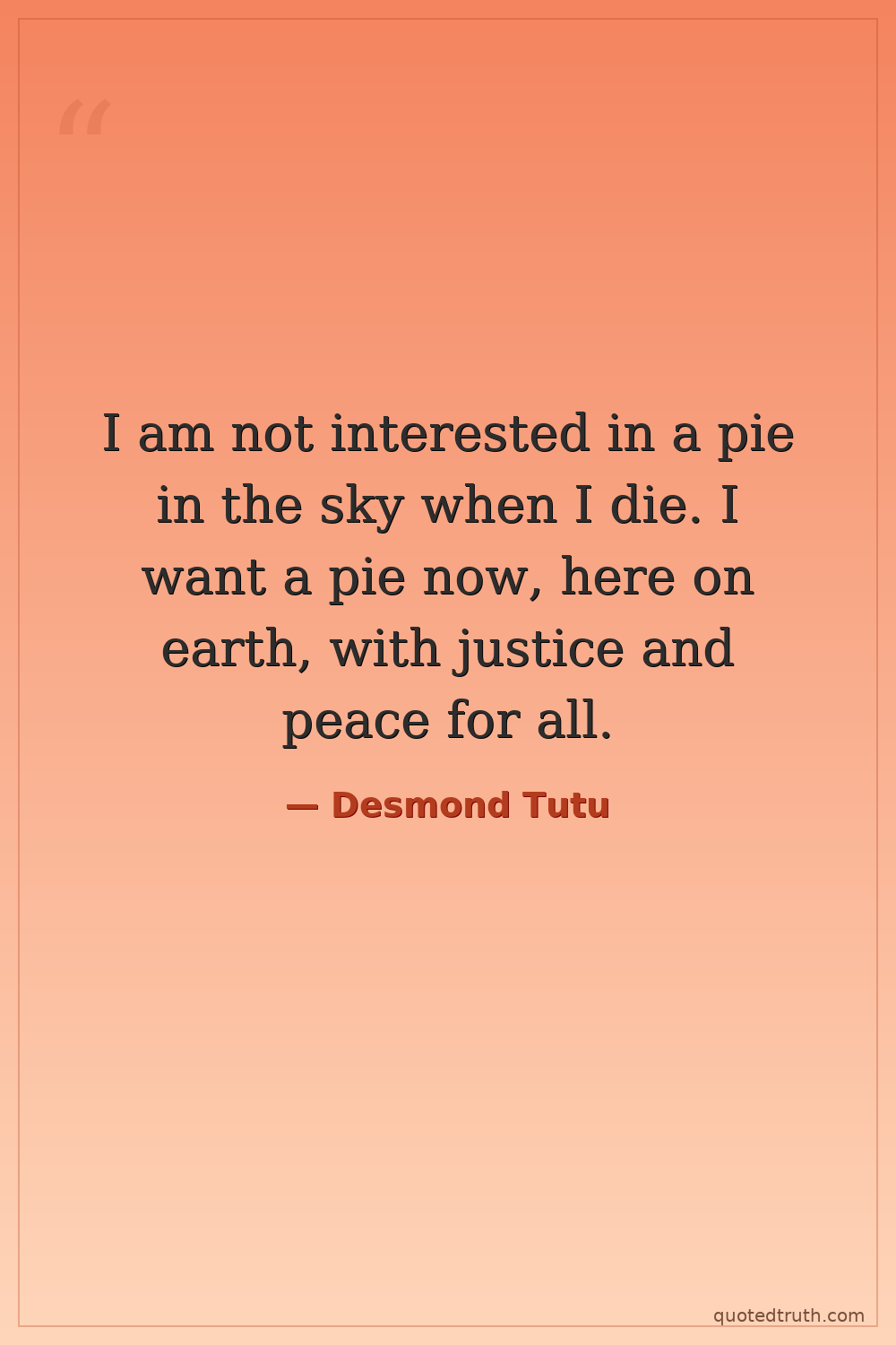 I am not interested in a pie in the sky when I die. I want a pie now, here on earth, with justice and peace for all.
