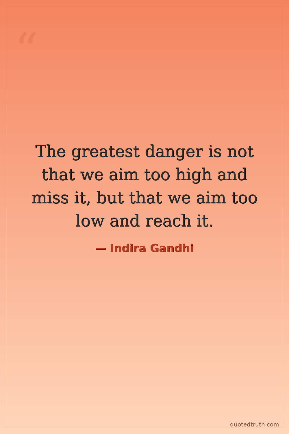 The greatest danger is not that we aim too high and miss it, but that we aim too low and reach it.