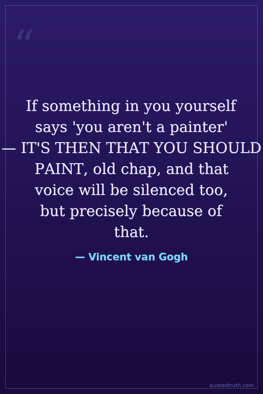 If something in you yourself says 'you aren't a painter' — IT'S THEN THAT YOU SHOULD PAINT, old chap, and that voice will be silenced too, but precisely because of that.