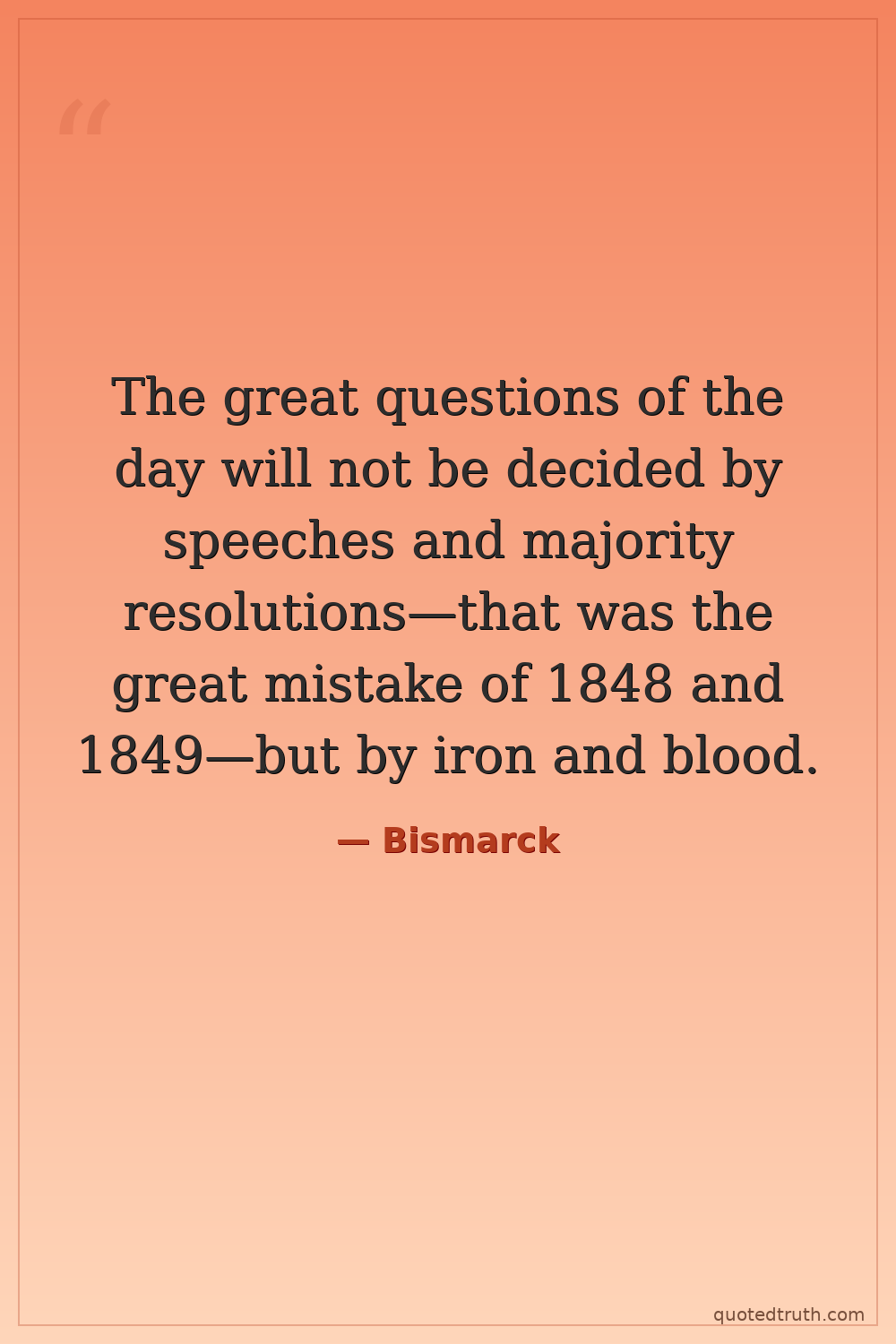 The great questions of the day will not be decided by speeches and majority resolutions—that was the great mistake of 1848 and 1849—but by iron and blood.