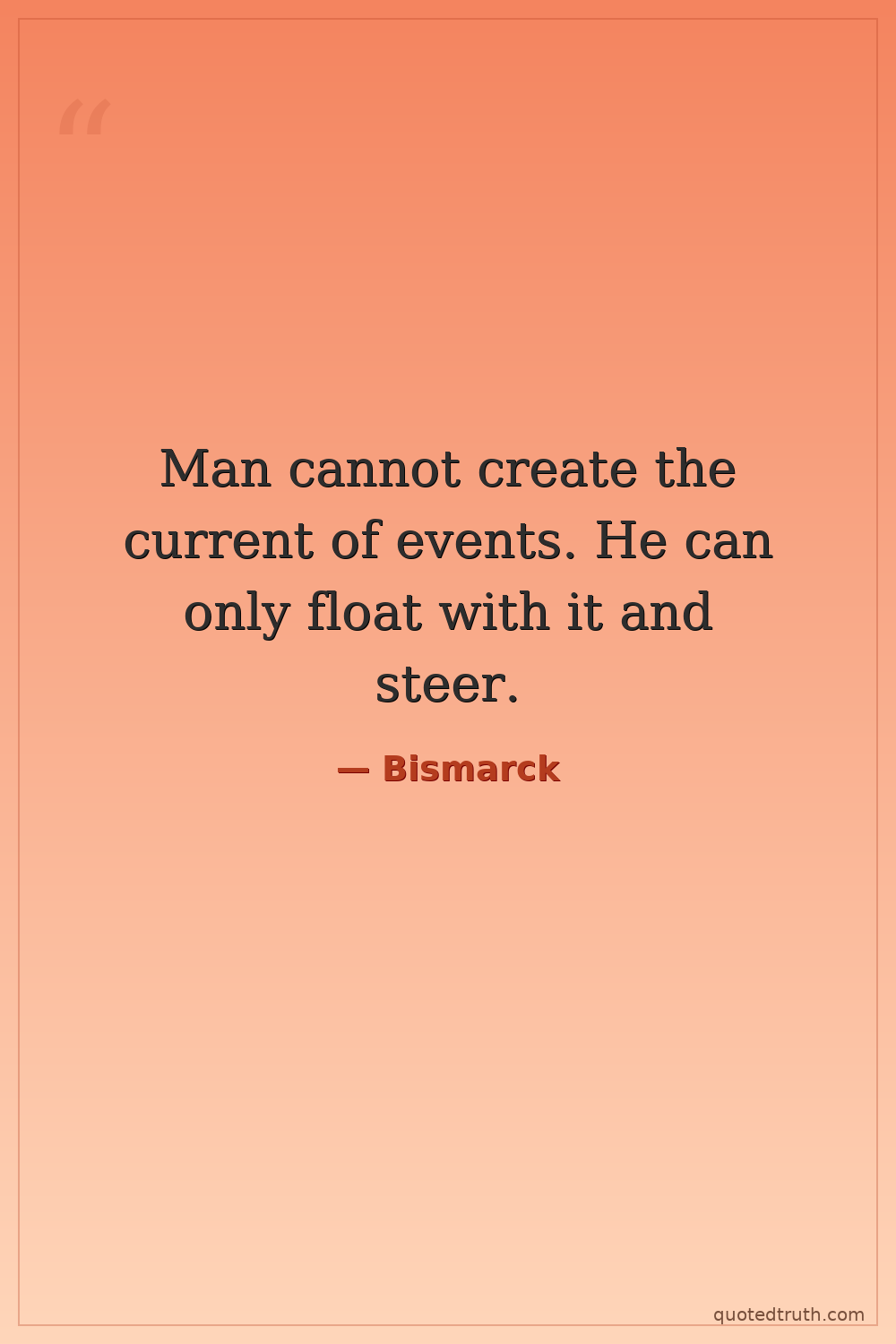 Man cannot create the current of events. He can only float with it and steer.