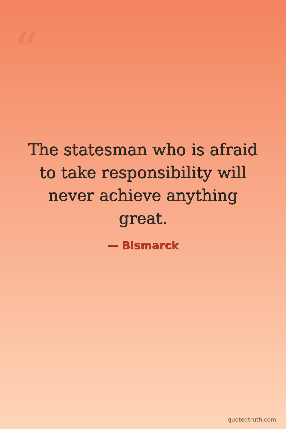 The statesman who is afraid to take responsibility will never achieve anything great.