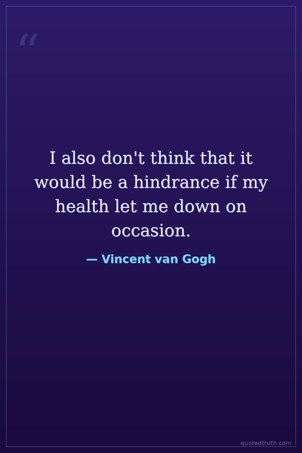 I also don't think that it would be a hindrance if my health let me down on occasion.