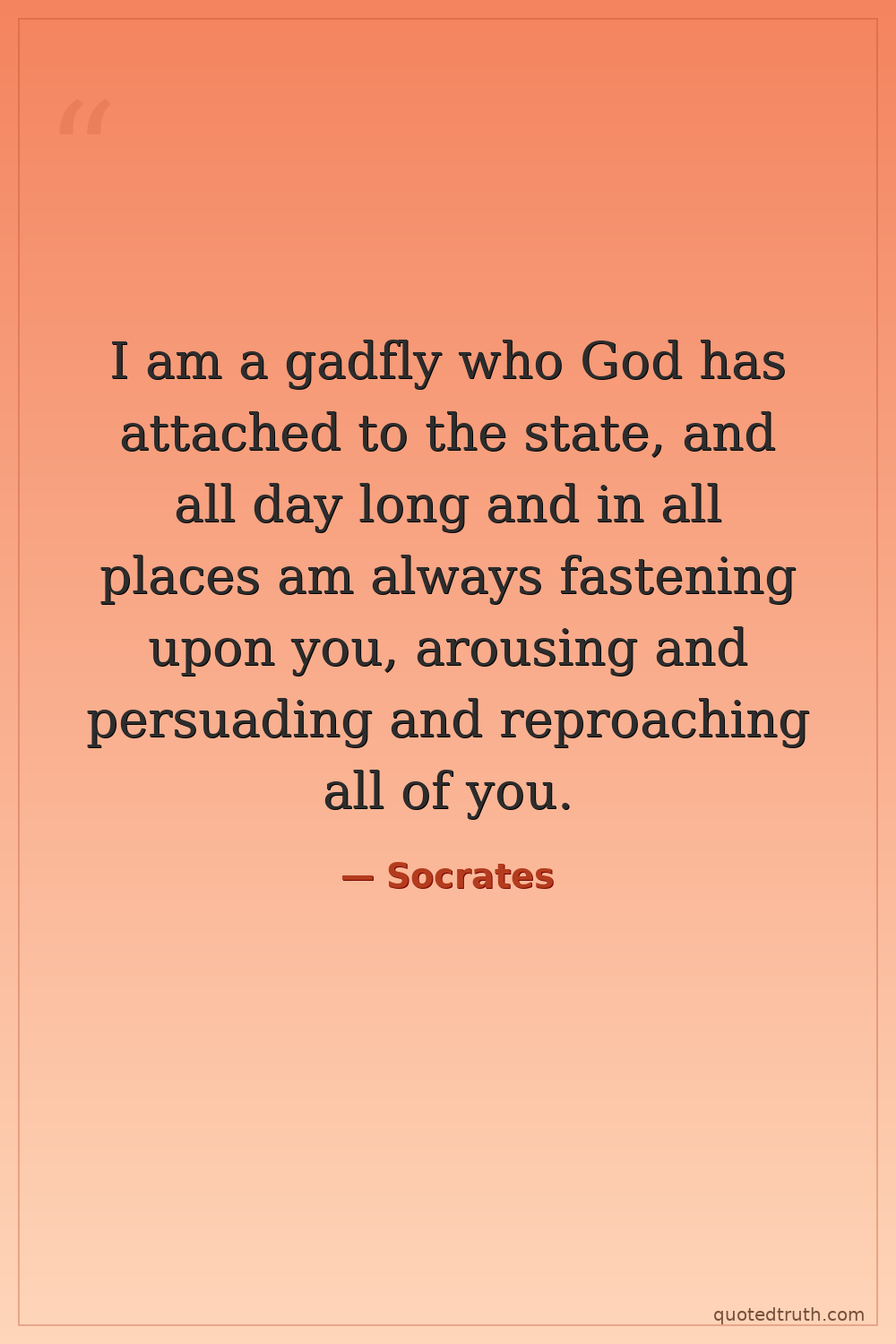 I am a gadfly who God has attached to the state, and all day long and in all places am always fastening upon you, arousing and persuading and reproaching all of you.