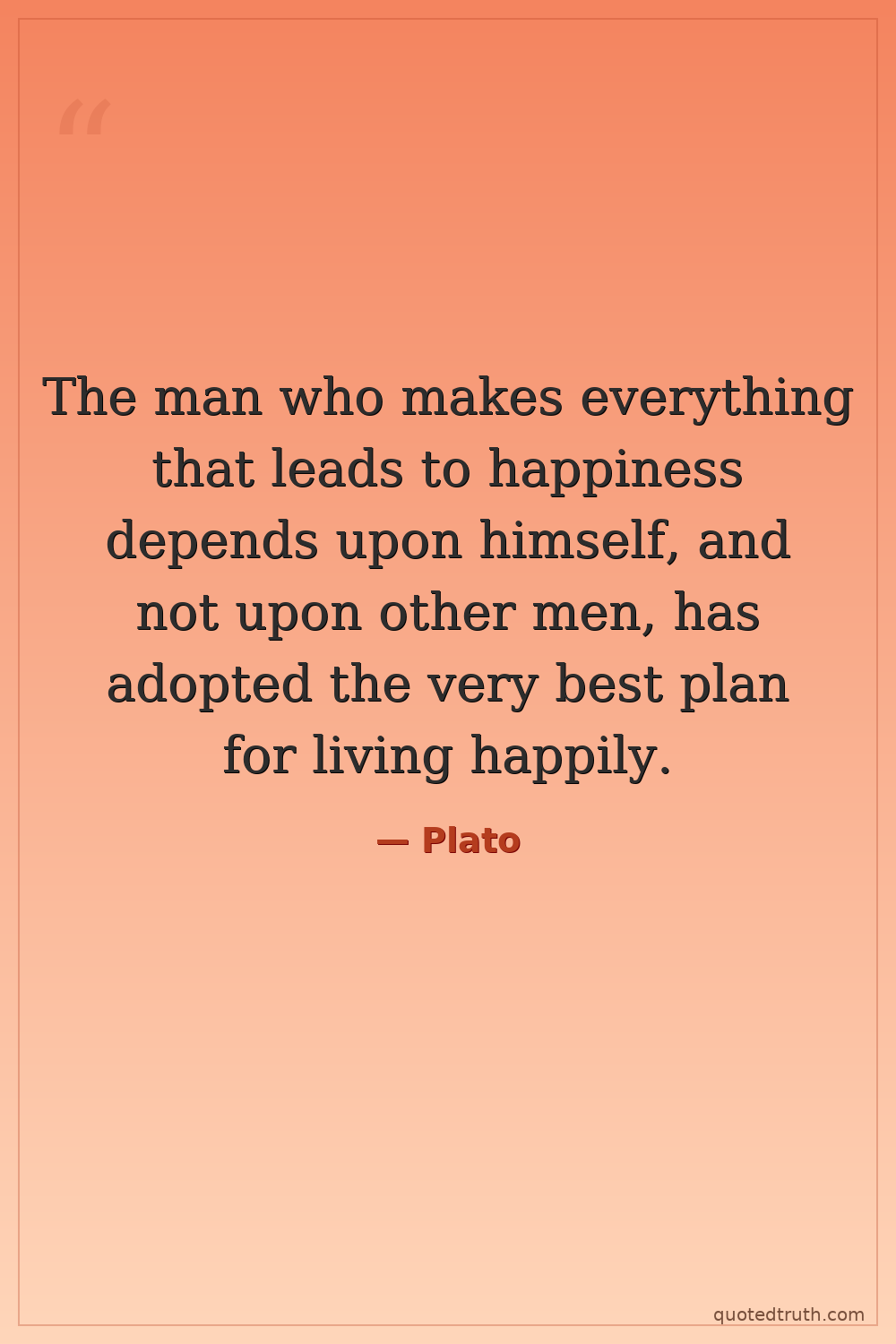 The man who makes everything that leads to happiness depends upon himself, and not upon other men, has adopted the very best plan for living happily.
