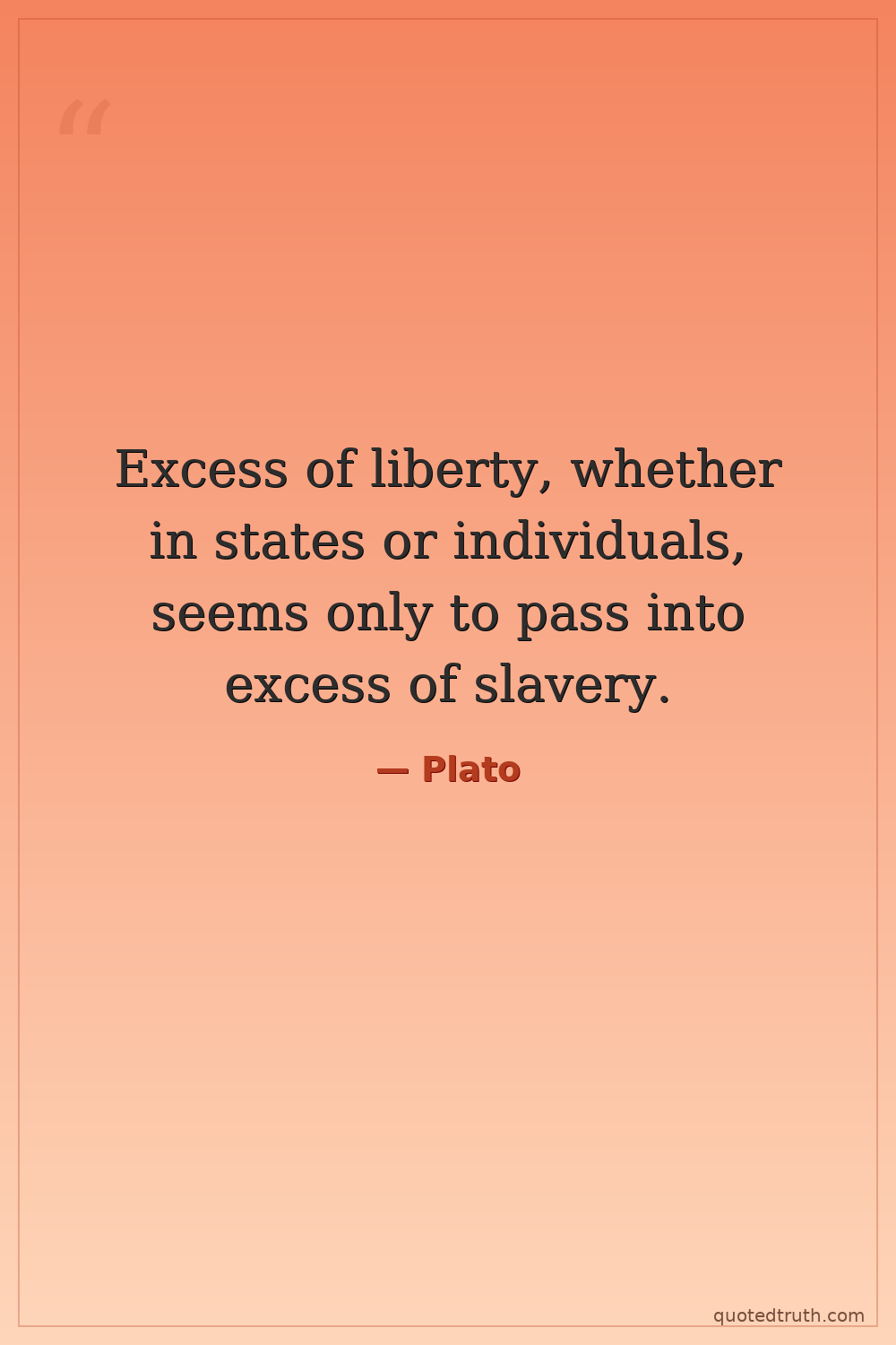 Excess of liberty, whether in states or individuals, seems only to pass into excess of slavery.