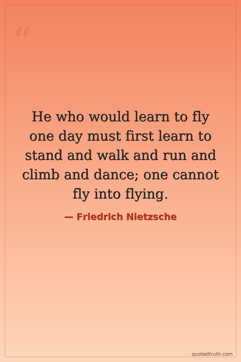 He who would learn to fly one day must first learn to stand and walk and run and climb and dance; one cannot fly into flying.