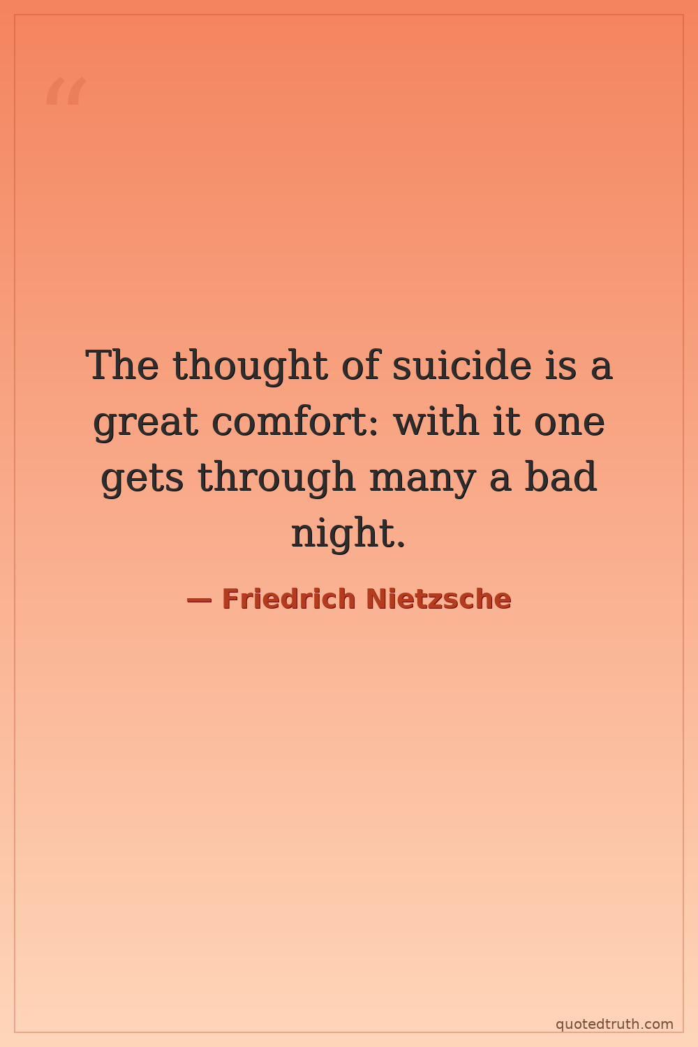 The thought of suicide is a great comfort: with it one gets through many a bad night.