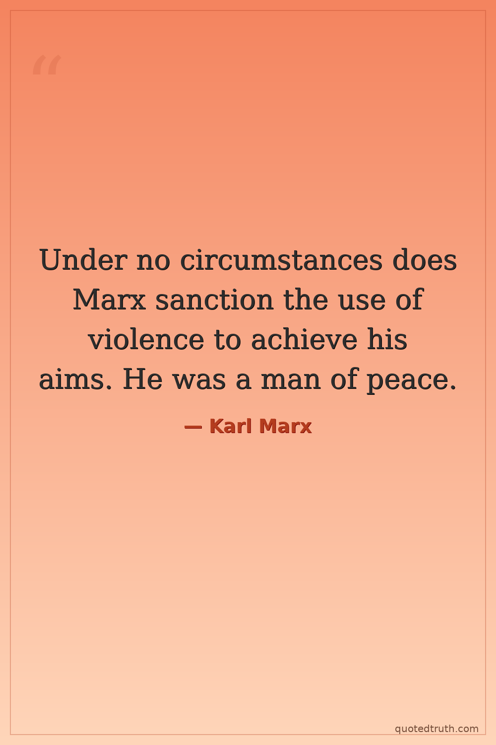 Under no circumstances does Marx sanction the use of violence to achieve his aims. He was a man of peace.