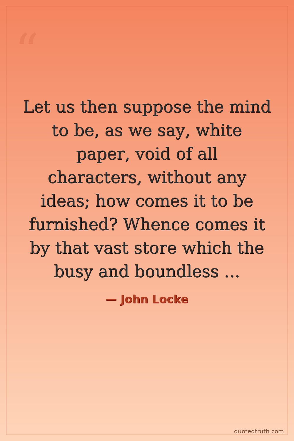 Let us then suppose the mind to be, as we say, white paper, void of all characters, without any ideas; how comes it to be furnished? Whence comes it by that vast store which the busy and boundless fancy of man has painted on it with an almost endless variety? Whence has it all the materials of reason and knowledge? To this I answer, in one word, from EXPERIENCE.