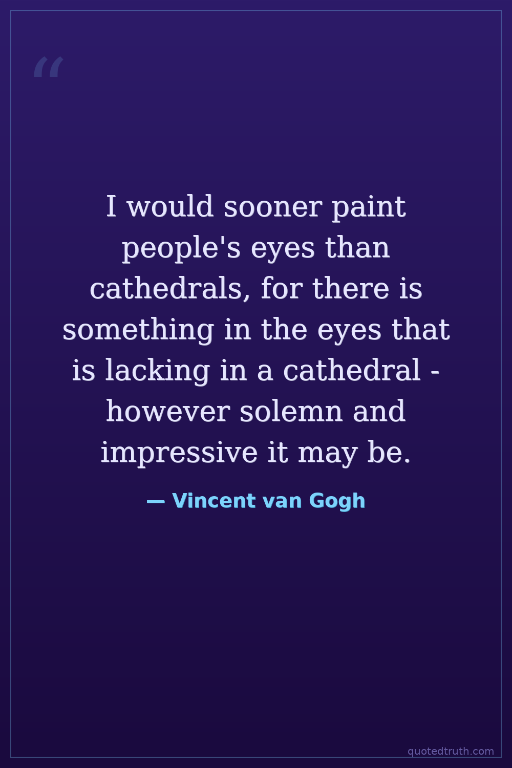 I would sooner paint people's eyes than cathedrals, for there is something in the eyes that is lacking in a cathedral - however solemn and impressive it may be.