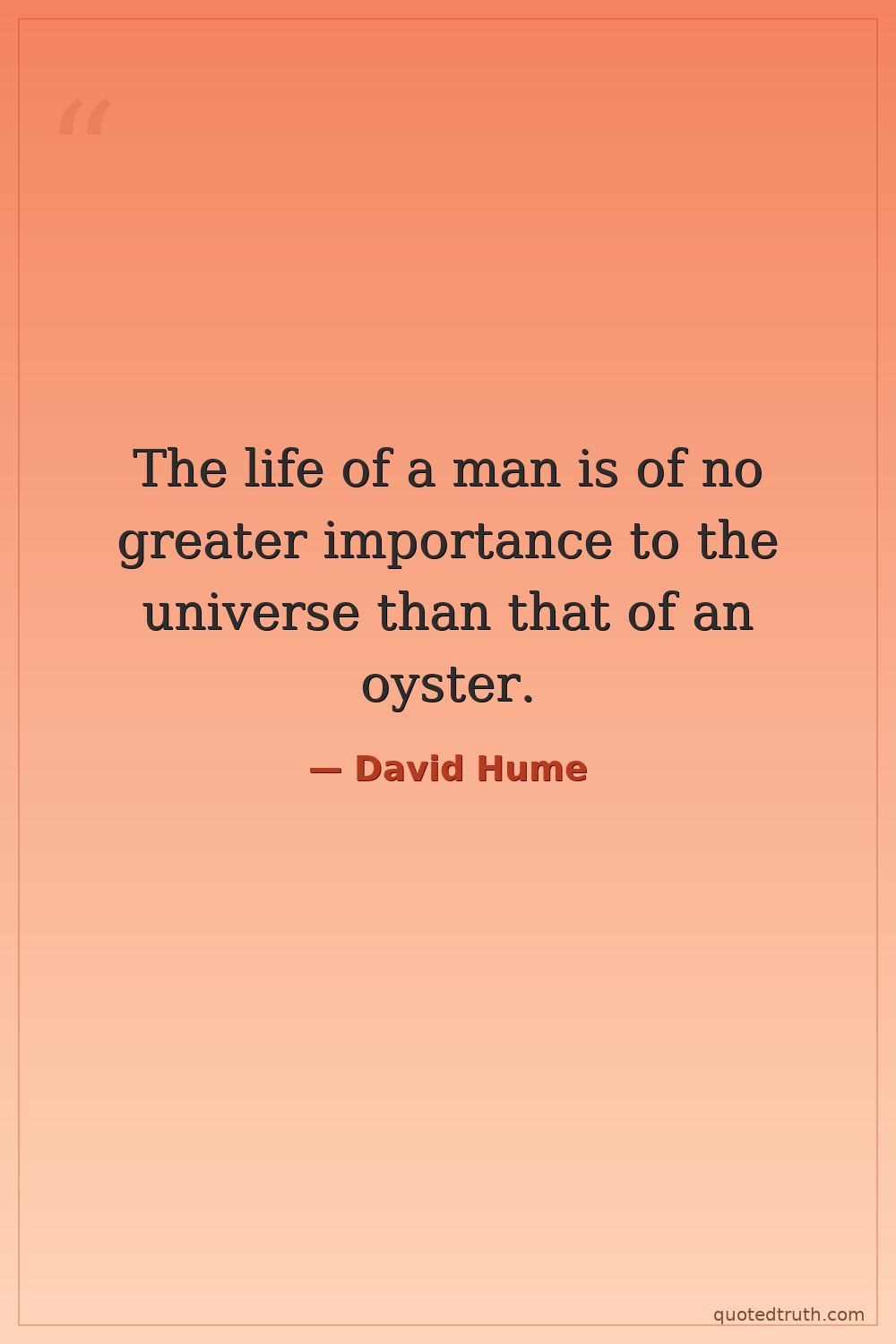 The life of a man is of no greater importance to the universe than that of an oyster.