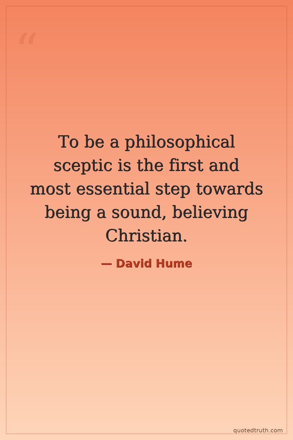 To be a philosophical sceptic is the first and most essential step towards being a sound, believing Christian.