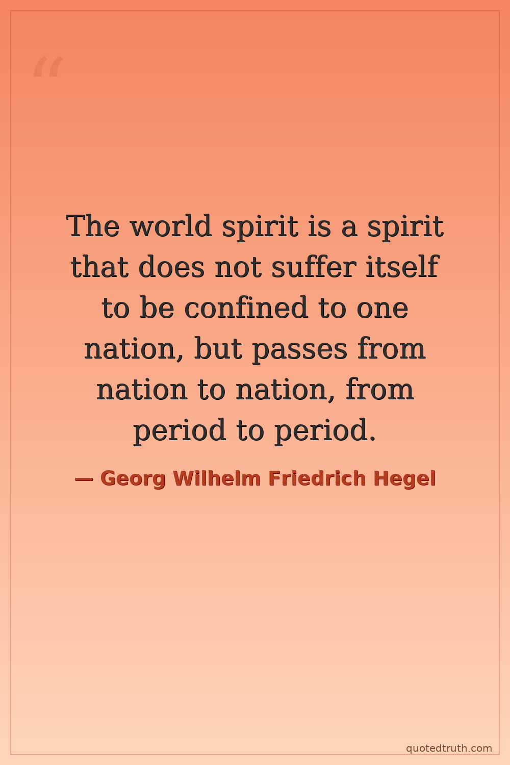 The world spirit is a spirit that does not suffer itself to be confined to one nation, but passes from nation to nation, from period to period.
