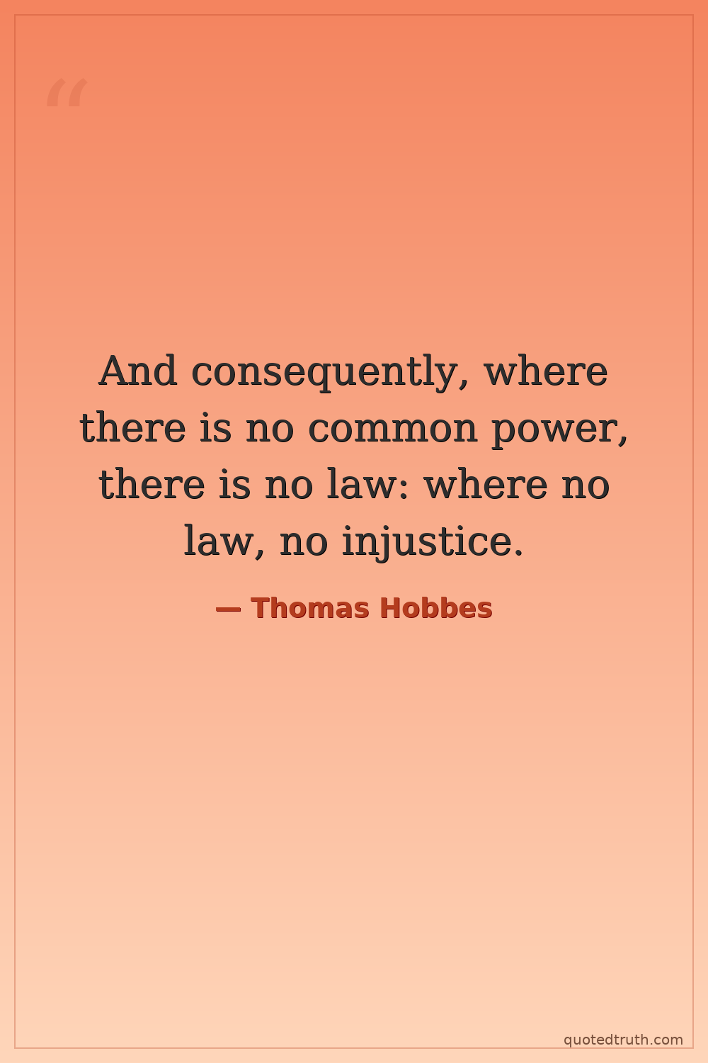 And consequently, where there is no common power, there is no law: where no law, no injustice.