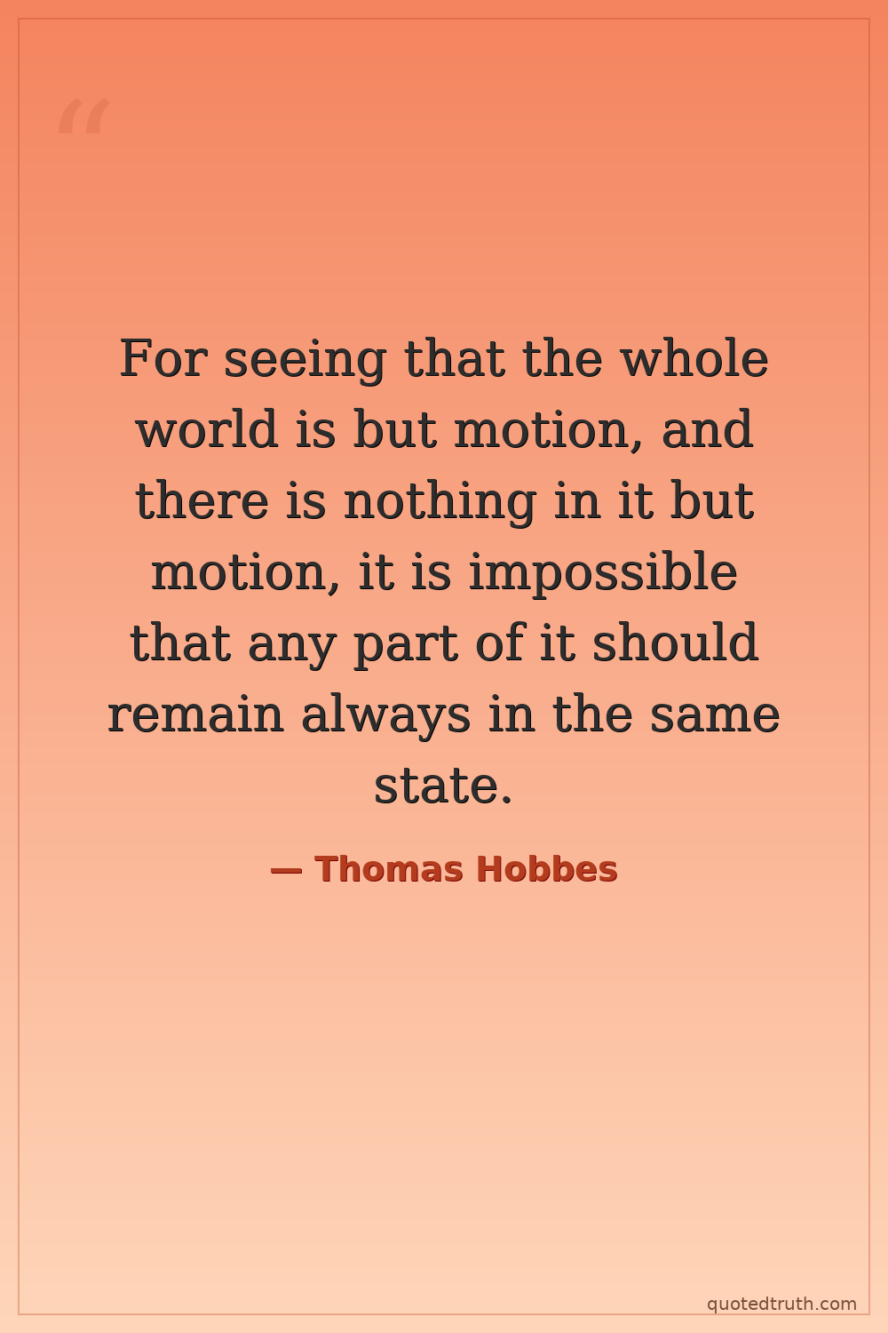 For seeing that the whole world is but motion, and there is nothing in it but motion, it is impossible that any part of it should remain always in the same state.
