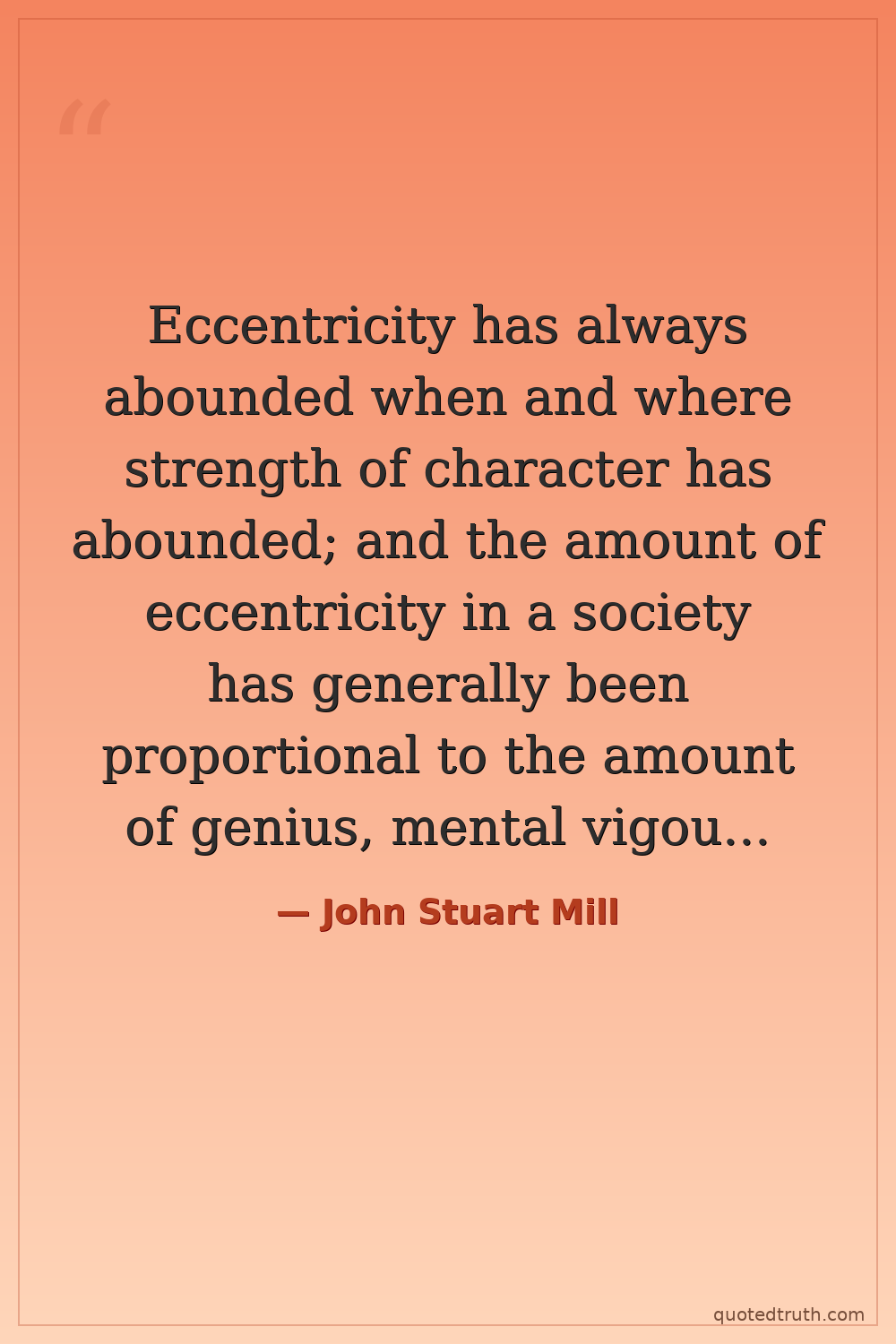 Eccentricity has always abounded when and where strength of character has abounded; and the amount of eccentricity in a society has generally been proportional to the amount of genius, mental vigour, and moral courage it contained.