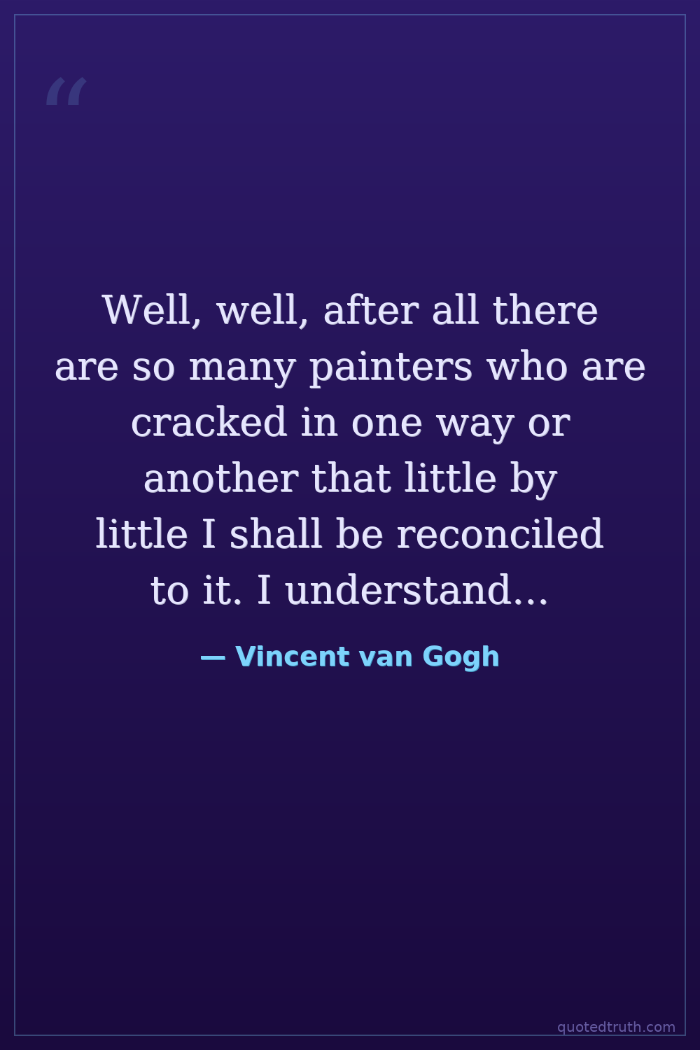 Well, well, after all there are so many painters who are cracked in one way or another that little by little I shall be reconciled to it. I understand...