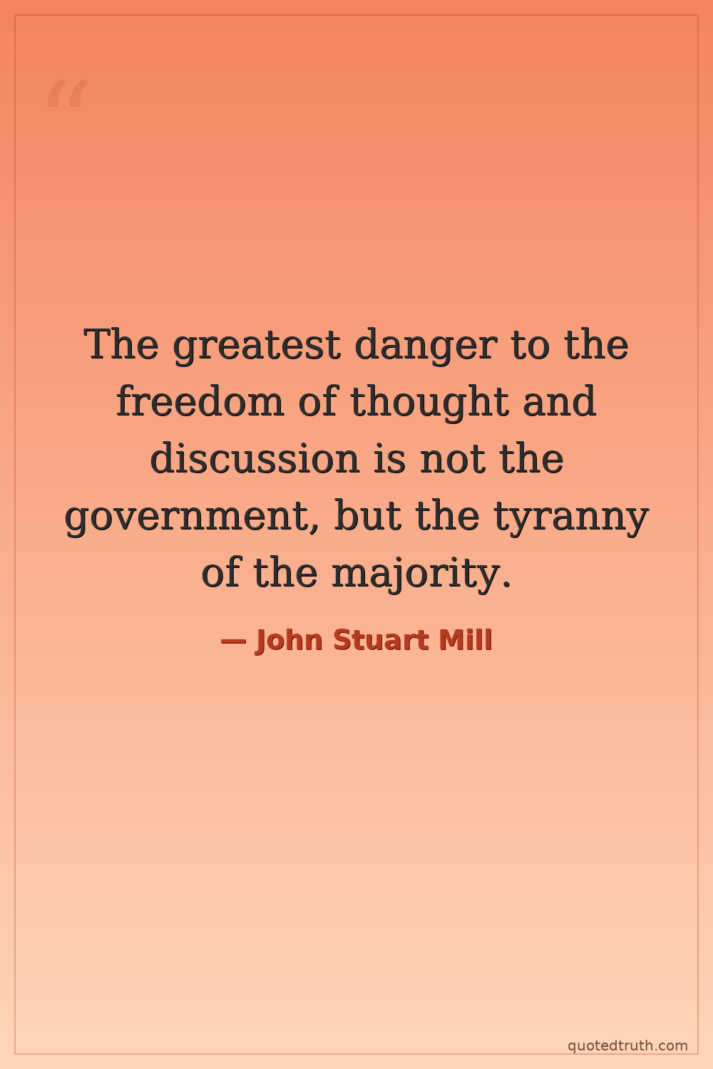 The greatest danger to the freedom of thought and discussion is not the government, but the tyranny of the majority.