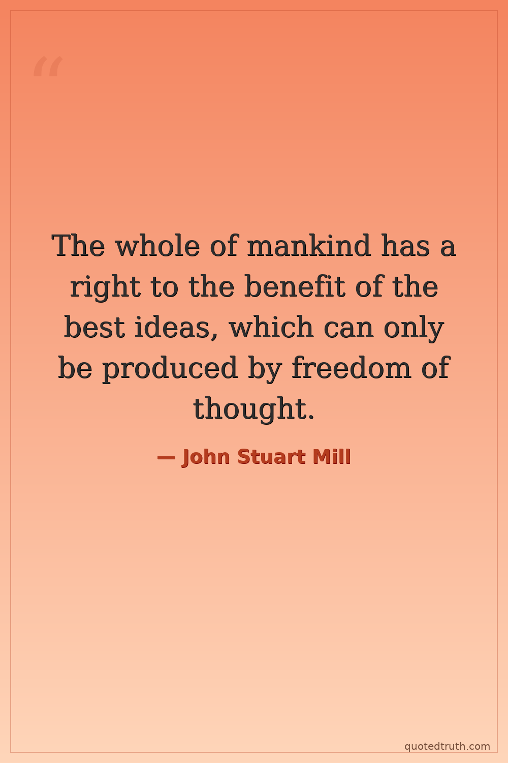 The whole of mankind has a right to the benefit of the best ideas, which can only be produced by freedom of thought.